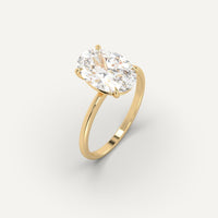 Whisper Thin 3 carat oval cut engagement ring, set with a high brilliance white and eye clean lab diamond in solid 14K yellow gold.