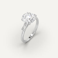 3-Stone 3 carat round cut engagement ring, set with a high brilliance white and eye clean lab diamond in solid 950 platinum.