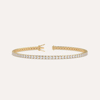 Classic 4 carat tennis bracelet for women, set with a high brilliance white and eye clean lab diamonds in solid 14K yellow gold.