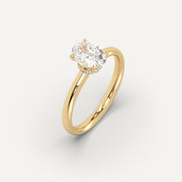 Hidden Halo 1 carat oval cut engagement ring, set with a high brilliance white and eye clean natural diamond in solid 14K yellow gold.