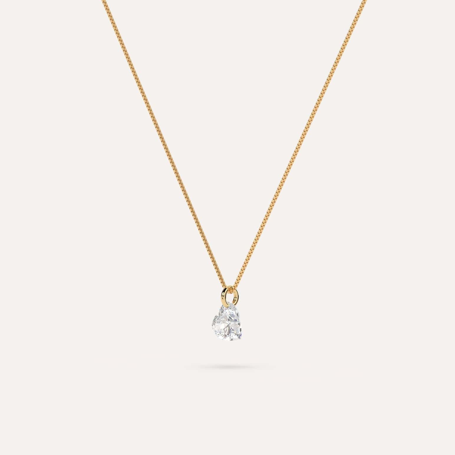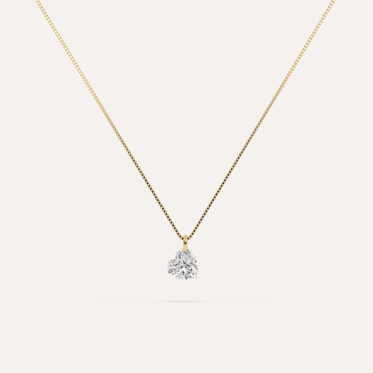 Classic and ultra-minimalist floating diamond necklace with a stunning 1/2 carat real lab grown heart diamond in 14K yellow gold. The venetian chain necklace is 16 inches and passes through the diamond for a uniquely clean aesthetic. A real floating diamond!