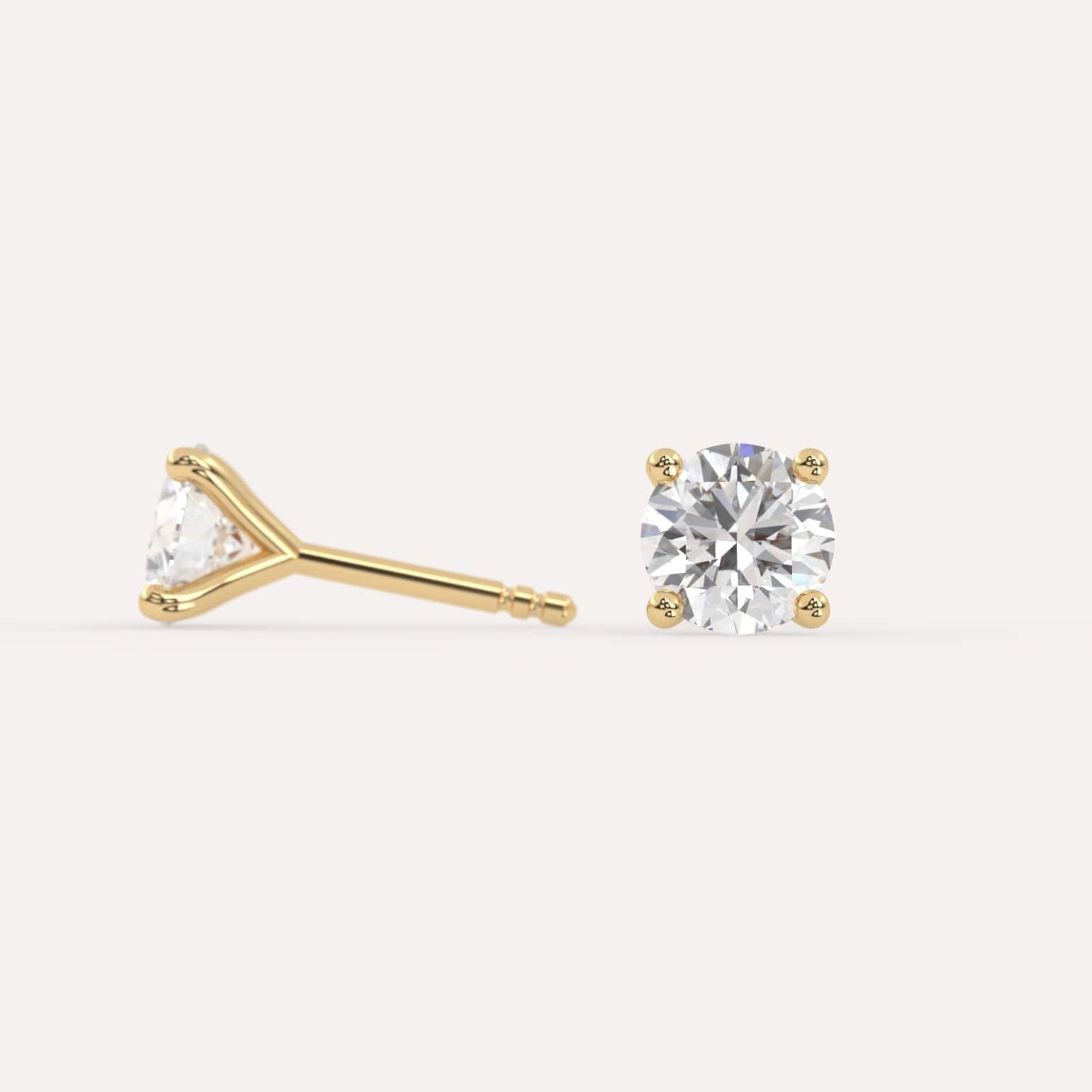 Everyday diamond stud earrings made for life. The top quality 1 carat total lab grown diamonds are colorless, eye clean and exceptionally sparkling, set in solid 14K yellow gold with easy use butterfly backings.