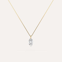 Classic and ultra-minimalist floating diamond necklace with a stunning 1/2 carat real lab grown marquise diamond in 14K yellow gold. The venetian chain necklace is 16 inches and passes through the diamond for a uniquely clean aesthetic. A real floating diamond!