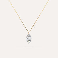 Classic and ultra-minimalist floating diamond necklace with a stunning 1 carat real lab grown marquise diamond in 14K yellow gold. The venetian chain necklace is 16 inches and passes through the diamond for a uniquely clean aesthetic. A real floating diamond!