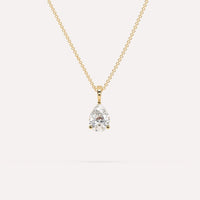 Classic 1 carat simple diamond pendant necklace for women, set with a high brilliance white and eye clean lab diamond in solid 14K yellow gold.
