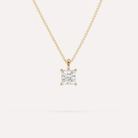Classic 1 carat simple diamond pendant necklace for women, set with a high brilliance white and eye clean lab diamond in solid 14K yellow gold.