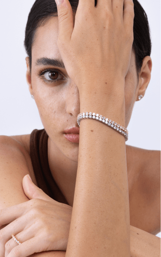 Casted in solid 14K white gold, our white gold tennis bracelets are expertly polished by our master goldsmiths and coated in a pure white rhodium finish. Set with ethically sourced natural or sustainable lab grown, dazzling white and clear diamonds, each tennis bracelet is an endless array of brilliance.