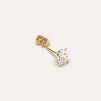 Classic 1 1/2 carat single diamond stud earring for women or men, set with a high brilliance white and eye clean natural diamond in solid 14K yellow gold.