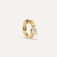 Classic 1/2 carat single diamond hoop earring for women or men, set with a high brilliance white and eye clean natural diamond in solid 14K yellow gold.
