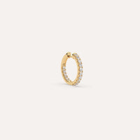 Timeless, everyday 1/4 carat total diamond 14mm, single hoop earring for women, set with high brilliance white and eye clean lab diamonds in solid 14K yellow gold.