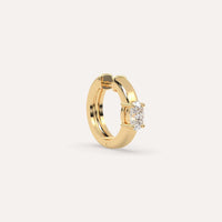 Classic 1/4 carat single diamond hoop earring for women or men, set with a high brilliance white and eye clean lab diamond in solid 14K yellow gold.