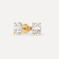 Classic 3 carat total diamond stud earrings for women, set with high brilliance white and eye clean natural diamonds in solid 14K yellow gold.
