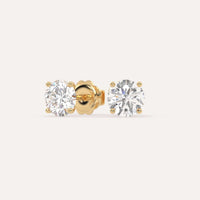 Classic 3 carat total diamond stud earrings for women, set with high brilliance white and eye clean natural diamonds in solid 14K yellow gold.