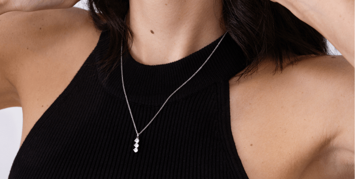 Enhance your neckline with our three stone diamond necklaces featuring the classic trilogy style and a unique and exclusive 3-stone cluster design.