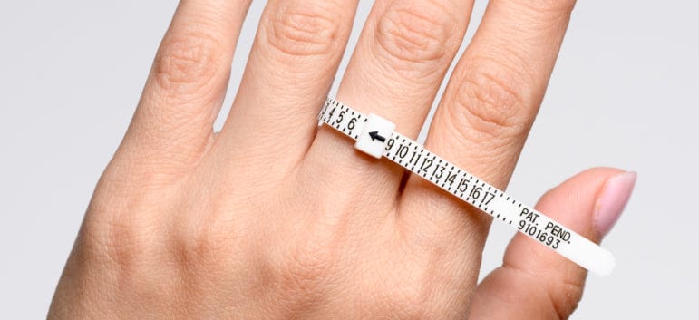 One of the most common, low cost ways to measure your ring size at home is to either order or print out a strip to pull over your finger and measure the lower part below the knuckle. While a good indication, it's not going to be 100% accurate, especially if you have larger knuckles. These gauges also won't give you any indication of comfort.