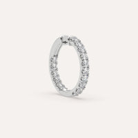 Timeless, everyday 1 1/2 carat total diamond 26mm, single hoop earring for women, set with high brilliance white and eye clean natural diamonds in solid 14K white gold.