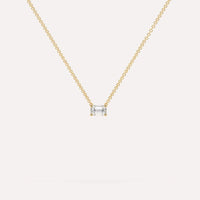 Classic 1/4 carat floating diamond necklace for women, set with a high brilliance white and eye clean natural diamond in solid 14K yellow gold.