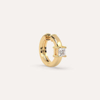 Classic 1/4 carat single diamond hoop earring for women or men, set with a high brilliance white and eye clean natural diamond in solid 14K yellow gold.