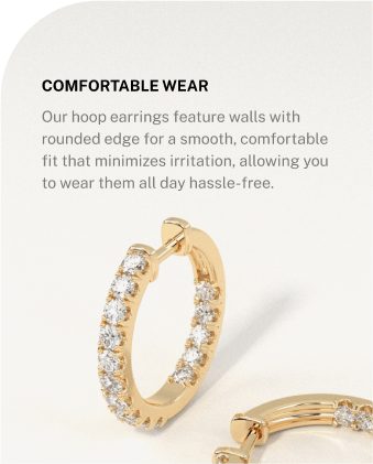 Timeless, everyday 1 carat total diamond 18mm hoop earrings for women, set with high brilliance white and eye clean lab diamonds in solid 14K white gold.