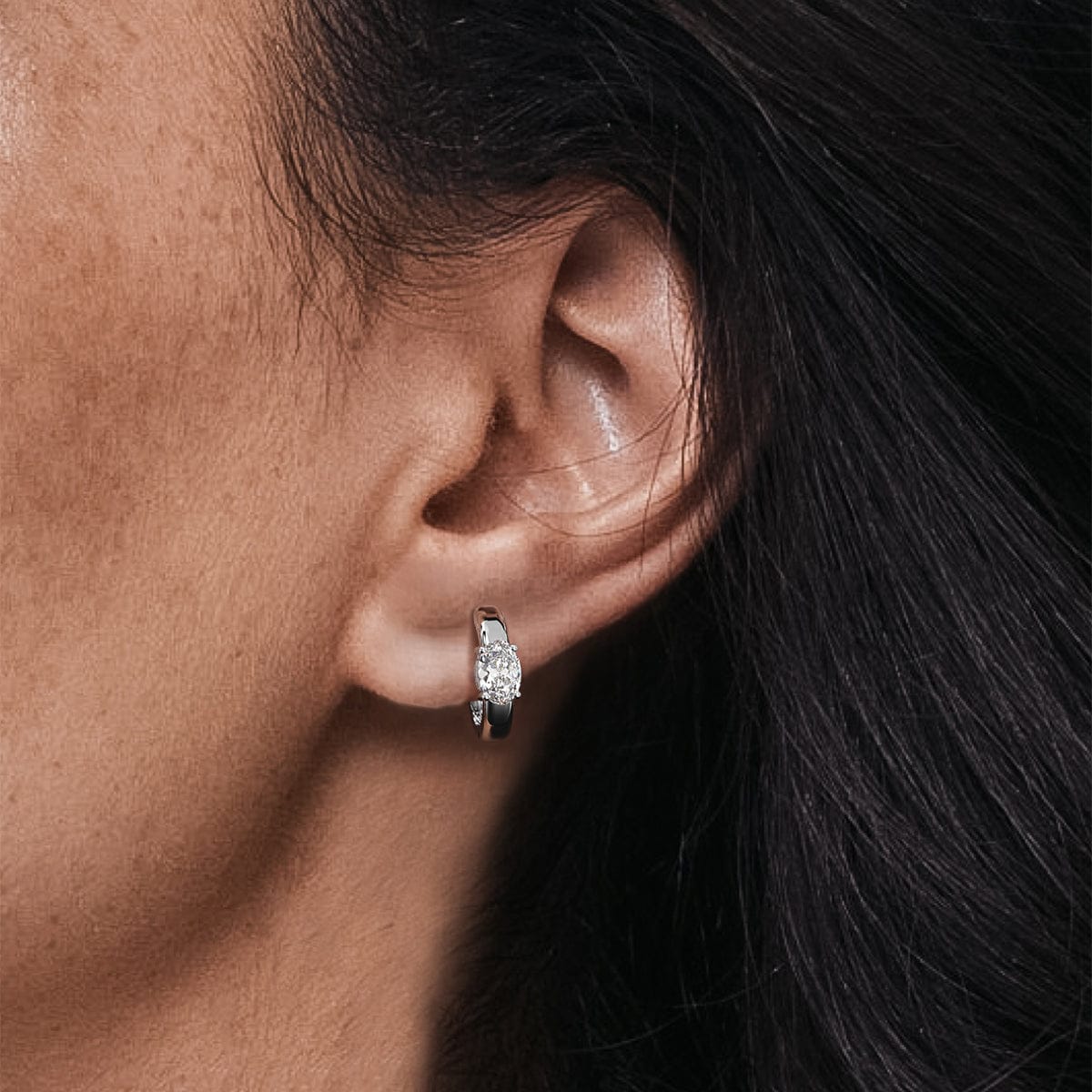 Classic 1 carat single diamond hoop earring for women or men, set with a high brilliance white and eye clean lab diamond in solid 14K white gold.