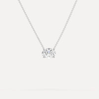 Classic 1 carat floating diamond necklace for women, set with a high brilliance white and eye clean natural diamond in solid 14K white gold.