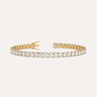 Classic 10 carat tennis bracelet for women, set with a high brilliance white and eye clean lab diamonds in solid 14K yellow gold.