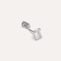 Classic 2 carat single diamond stud earring for women or men, set with a high brilliance white and eye clean lab diamond in solid 14K white gold.