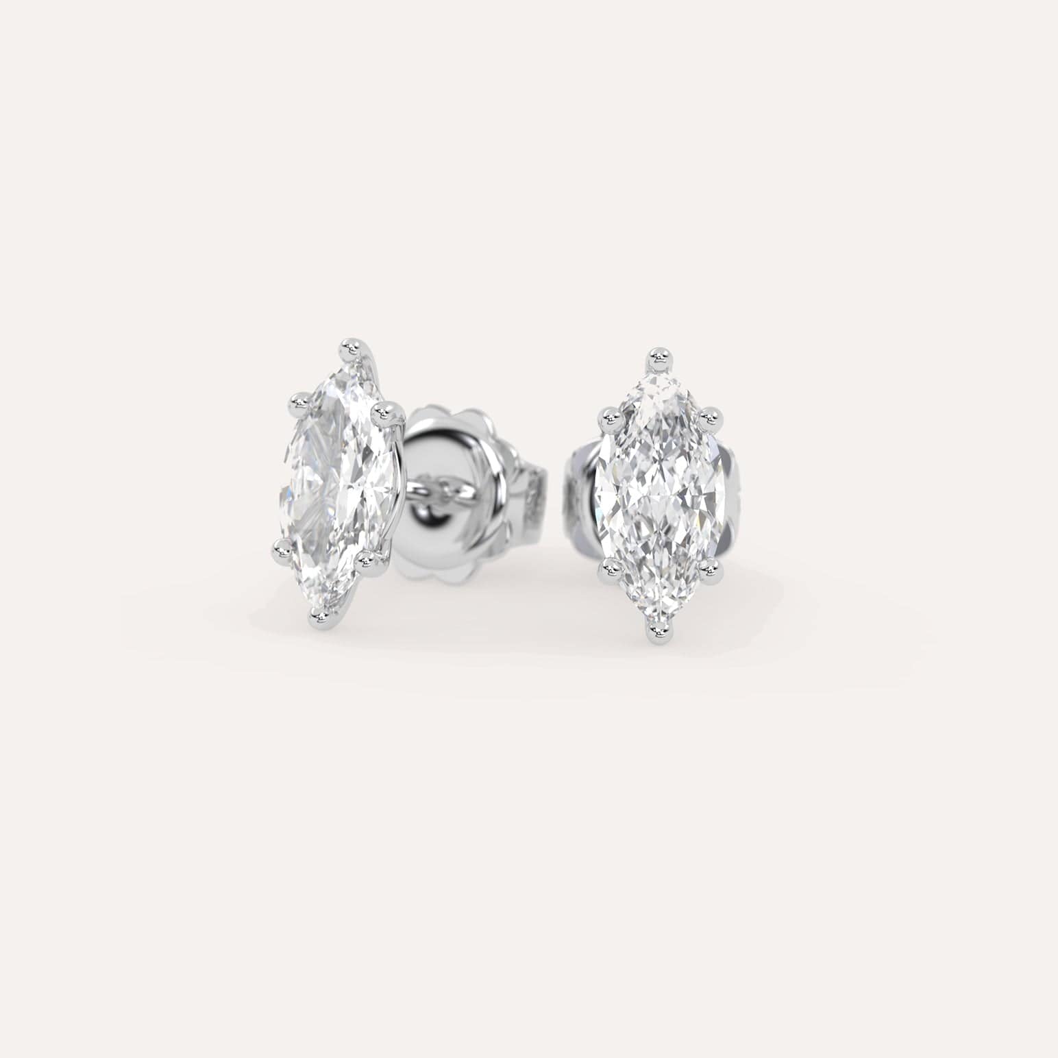 Classic 2 carat total diamond stud earrings for women, set with high brilliance white and eye clean lab diamonds in solid 14K white gold.
