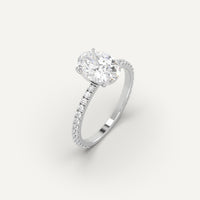 Pave 2 carat oval cut diamond engagement ring, set with a high brilliance white and eye clean clarity enhanced natural diamond in solid 950 platinum.
