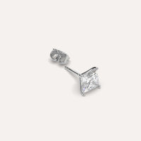 Classic 2 carat single diamond stud earring for women or men, set with a high brilliance white and eye clean lab diamond in solid 14K white gold.