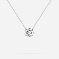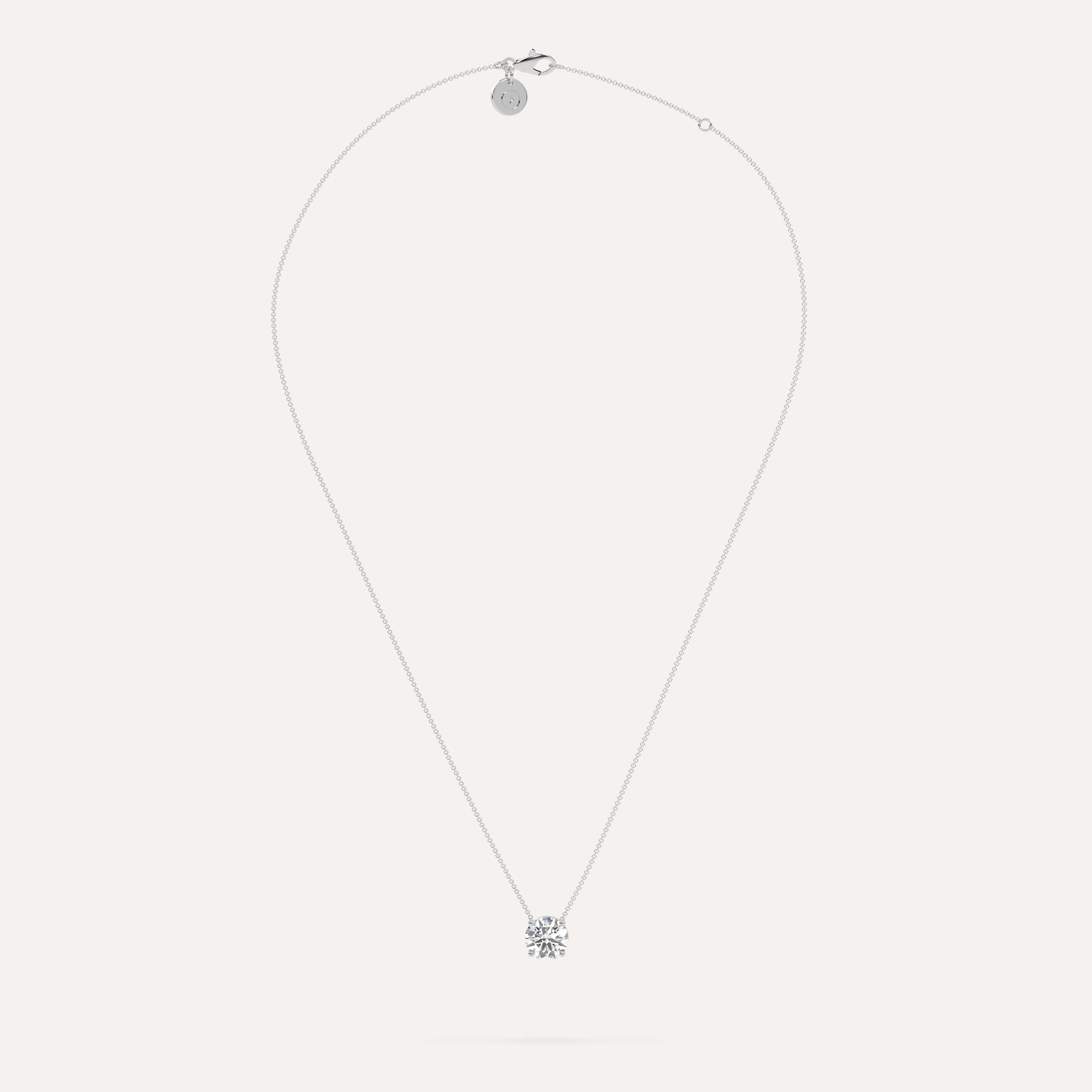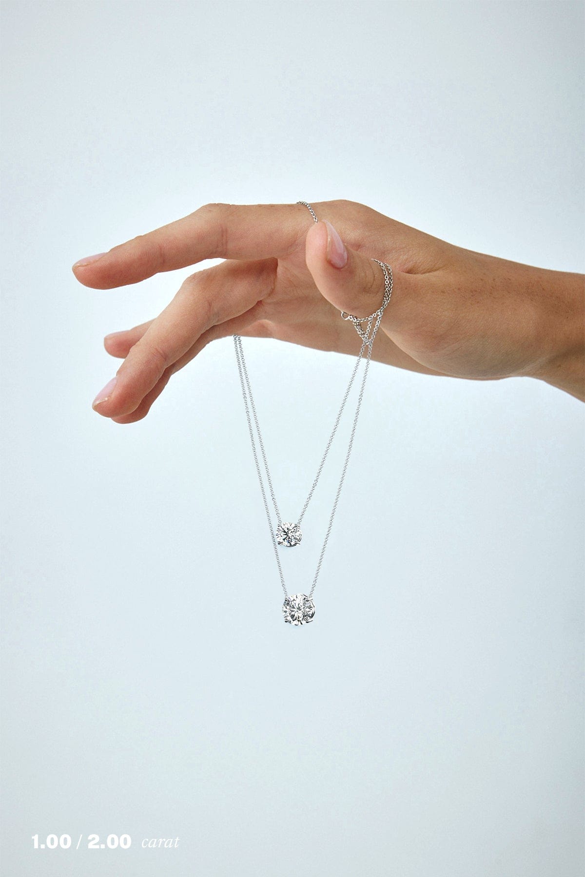 Classic 2 carat floating diamond necklace for women, set with a high brilliance white and eye clean natural diamond in solid 14K white gold.