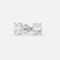 Classic 3 carat total diamond stud earrings for women, set with high brilliance white and eye clean natural diamonds in solid 14K white gold.