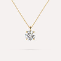 Classic 3 carat simple diamond pendant necklace for women, set with a high brilliance white and eye clean natural diamond in solid 14K yellow gold.