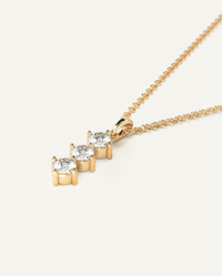 Elegant 3-stone pendant with an adjustable 18" to 16" necklace chain, set with 3 x diamonds totaling a choice of 0.45, 0.60 or 1.00 carat. All stones are colorless, eye clean and high brilliance diamonds. Natural diamonds come in F-G/SI1-SI2 grade while our lab grown diamonds are F-G/VS1-VS2 quality.