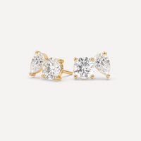 Discover our handcrafted 14k yellow gold diamond earrings, adorned with round and pear diamonds in a toi et moi design. Choose from high brilliance, white, and eye-clean natural or lab-grown diamonds. Our natural diamonds are graded F-G/SI1-SI2, and lab diamonds F-G/VS1-VS2, all with secure butterfly push-backs.